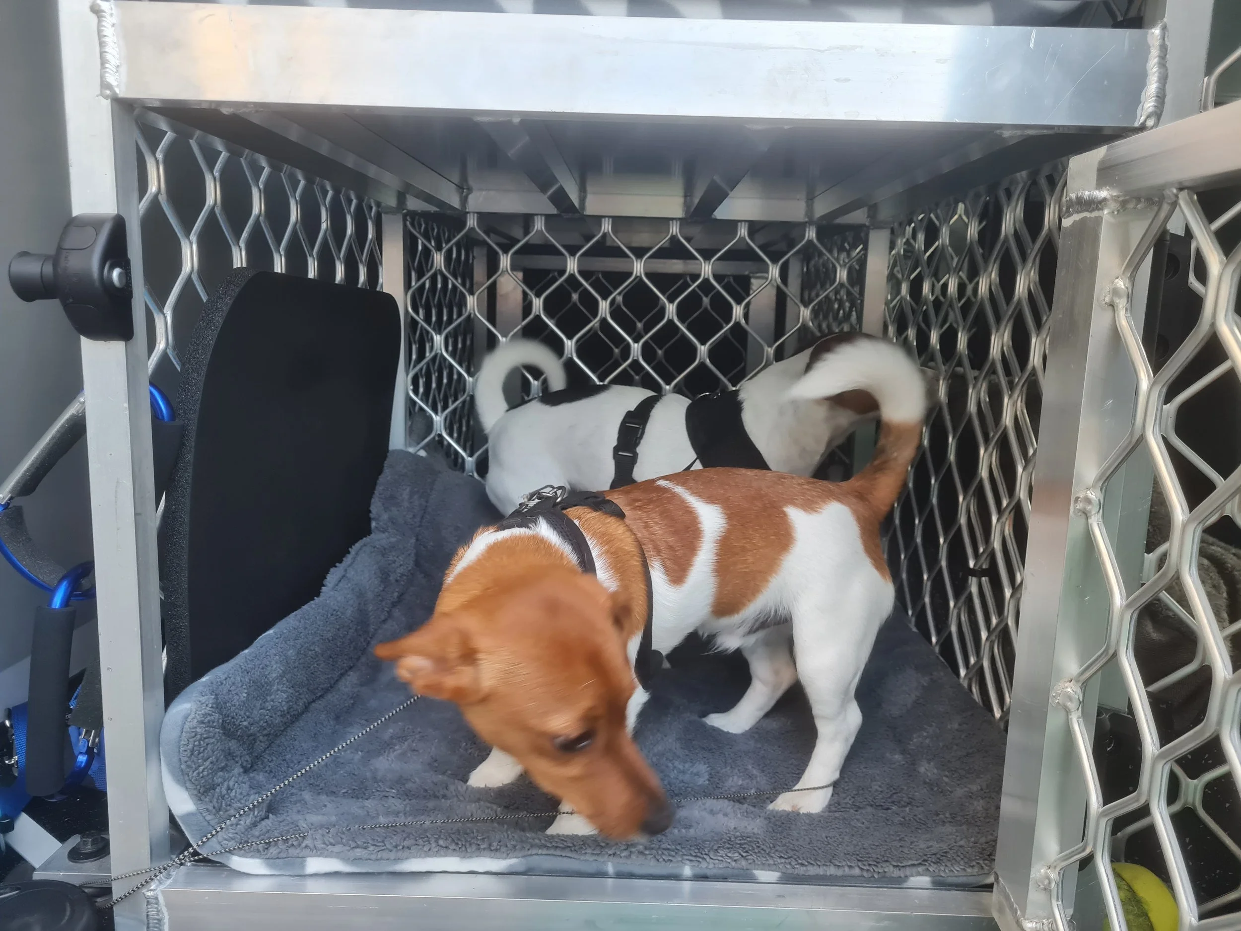 We have specially designed cages for our small pooches to arrive back home with no bumps or lumps.